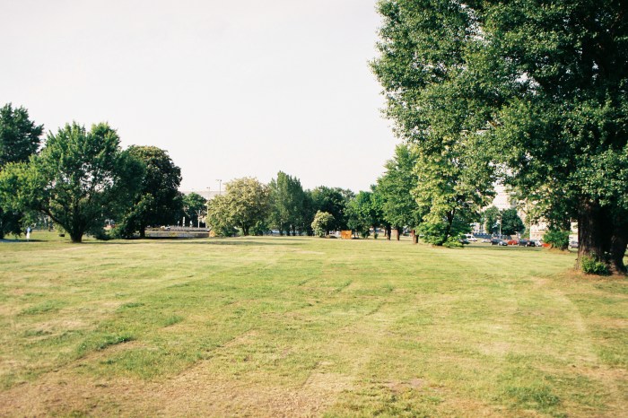 Zupełnie inaczej ma się sprawa pustek w mieście współczesnym. Ich istnienie często nie jest elementem świadomego planowania, a jedynie skutkiem zniszczeń II wojny światowej lub – niekiedy – tendencji polityczno-społecznych i wynikających z nich decyzji urbanistycznych. Przykładów tego „zjawiska” znajdziemy we Wrocławiu wiele. Plac Społeczny – do 1945 roku precyzyjnie zagospodarowana część miasta – dziś definiowany jest przez przestarzały węzeł komunikacyjny[2]. Niegdyś ten obszar zajmowała intensywna zabudowa z kilkoma ulicami, między innymi: